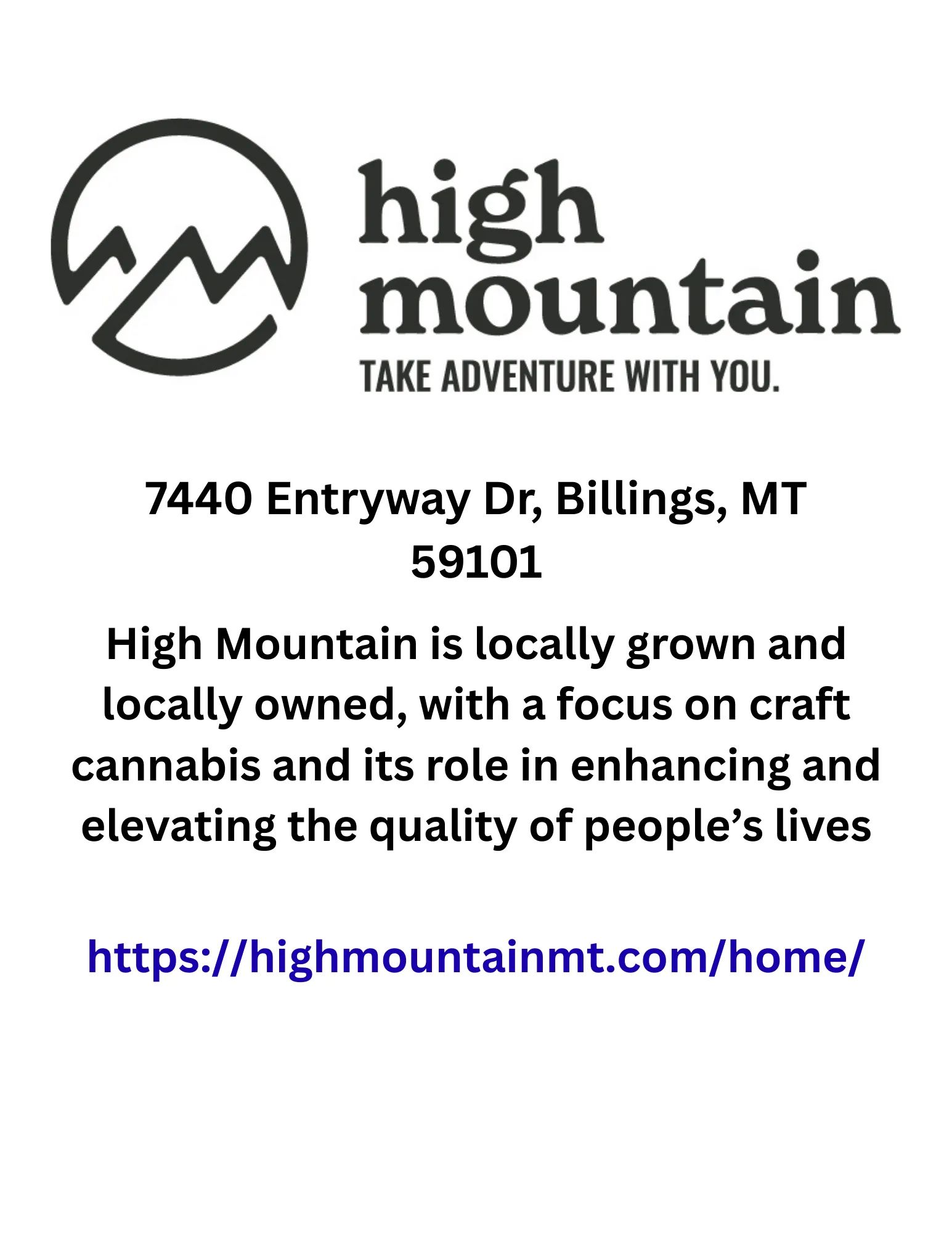 Locally grown and locally owned, High Mountain is dedicated to producing craft cannabis designed to enhance everyday life. Their philosophy centers on the belief that thoughtfully cultivated cannabis can elevate wellness, connection, and overall quality of life. With a strong emphasis on small-scale cultivation and intentional practices, High Mountain delivers products that reflect both skill and heart.