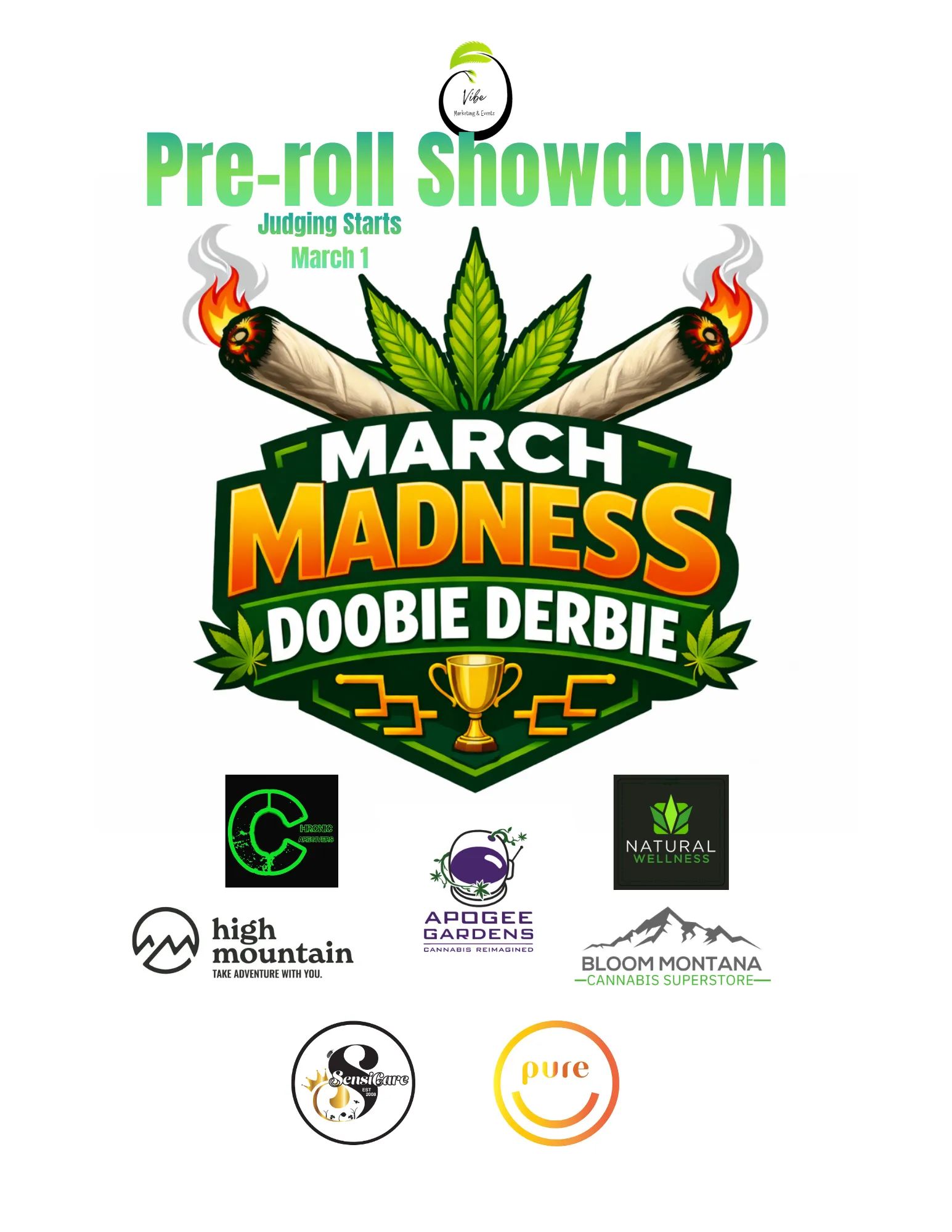March Madness isn’t just for brackets and buzzer-beaters this year—it’s for perfect burns, smooth pulls, and elite craftsmanship. Vibe Marketing & Events is proud to present the March Madness Doobie Derbie, a multi-week pre-roll competition designed to spotlight the best dispensary-made pre-rolls in the region.