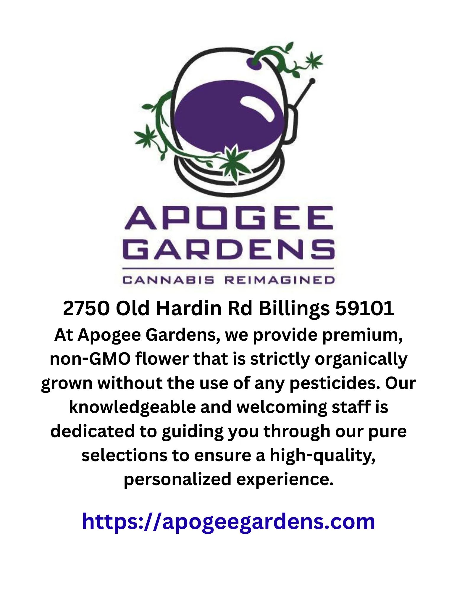 At Apogee Gardens, cultivation is both a science and an art form. Specializing in premium, non-GMO flower that is grown organically and never treated with pesticides, their focus is simple: purity, potency, and plant integrity. Their knowledgeable and welcoming team is passionate about helping customers discover products tailored to their preferences, ensuring every visit is personalized and memorable.